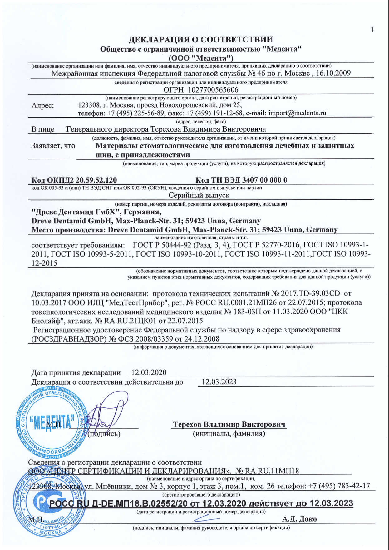 Изготовитель – «Древе Тентами Гмбх», Германия.